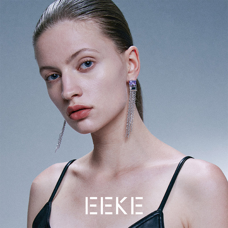 Twin, rectangular gem Tassel earring