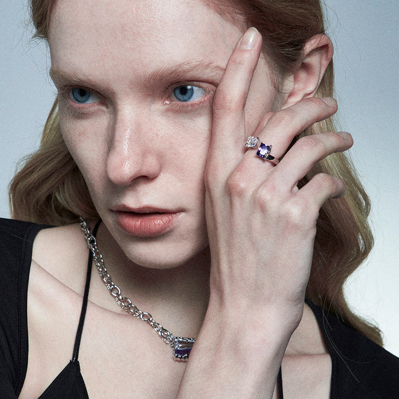 Double color gem ring opening