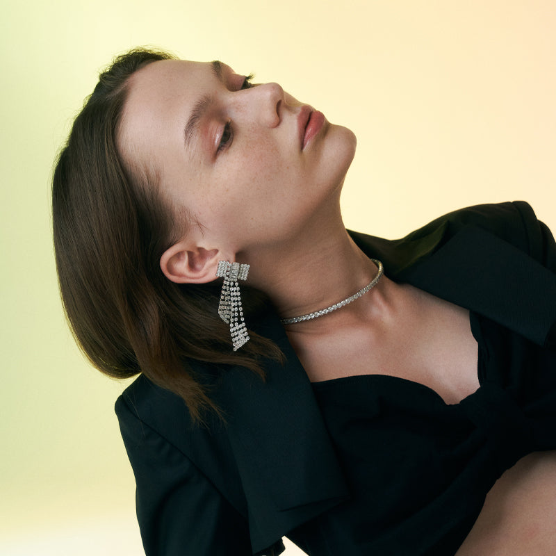 Bowknot multi-row tassel earrings